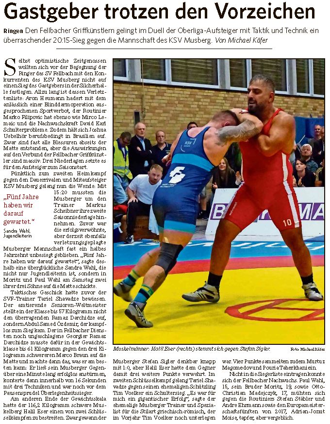 Kampfbericht SVF 1 vs Musberg - Fellbacher Zeitung vom 02.10.2018