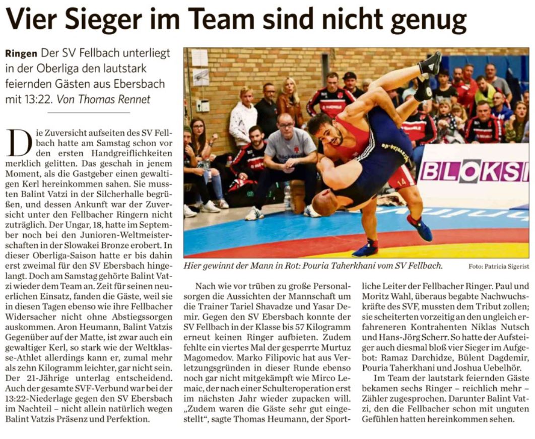 Kampfbericht der Fellbacher Zeitung vom 13.11.2018 - SVF vs Ebersbach