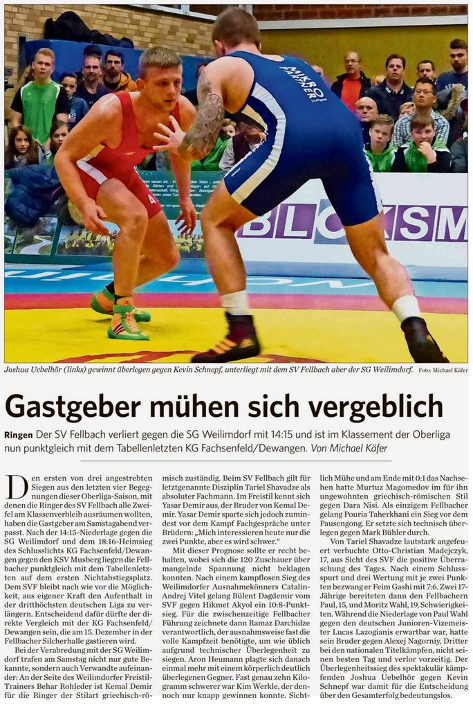 Kampfbericht Fellbacher Zeitung - SVF I vs SG Weilimdorf I