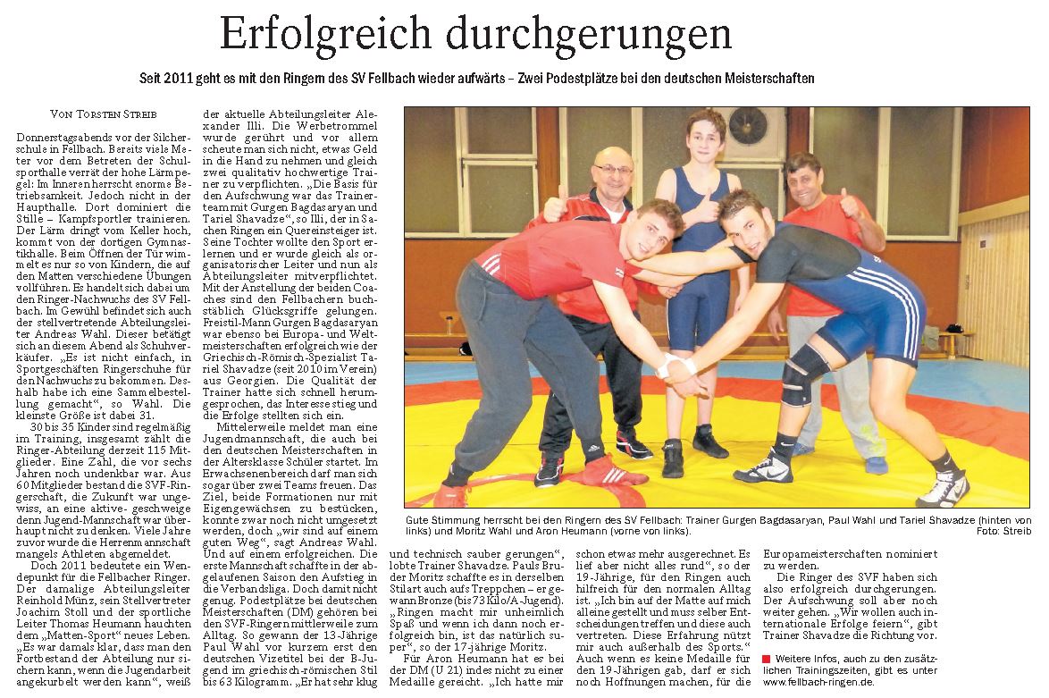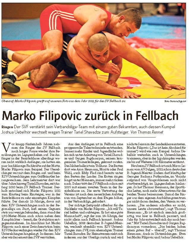 Fellbacher Zeitung vom 12.04. - SVF Ringen Neuzugaenge