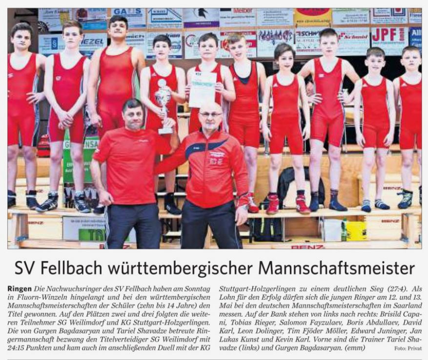 Jugendmannschaft wird Württembergischer Mannschaftsmeister bei den Schülern